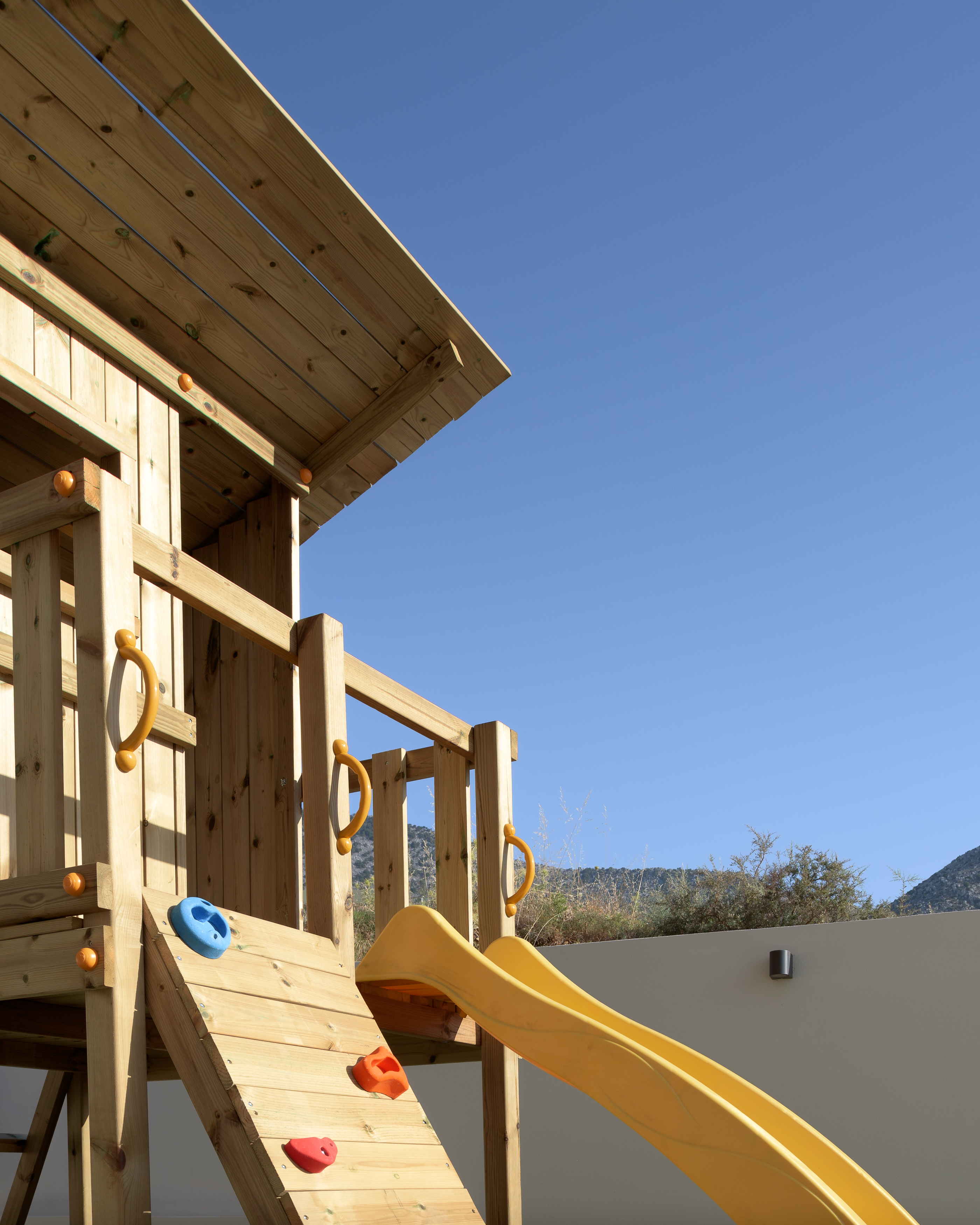 - Children's Playground (Wooden Activity House with a Slide and Climbing Wall)